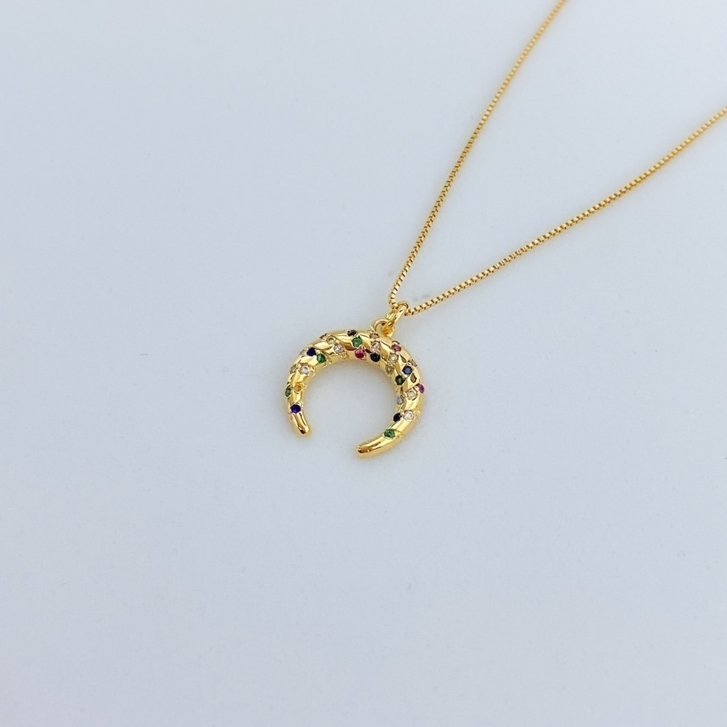 Colar banhado a ouro 18k com pingente cravejado em microzirconias coloridas